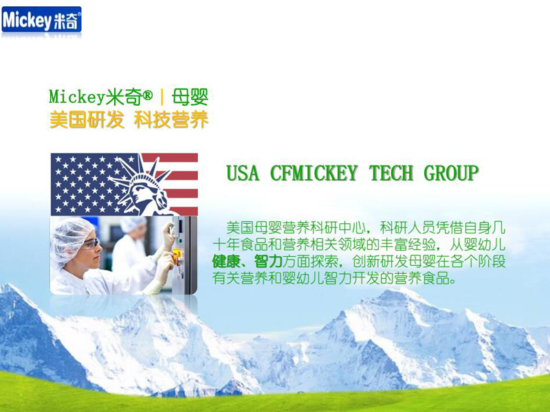 品牌名稱:米奇 主營產(chǎn)品:米奇母嬰營養(yǎng)品 品牌特色:美國研發(fā) 全球甄選