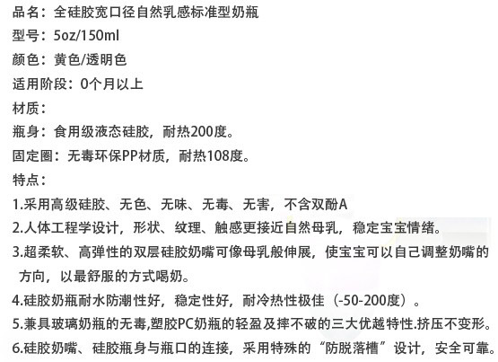 硅膠很柔軟,不用奶瓶刷用手也可以刷到奶瓶的各個(gè)角落,容易清洗。寶寶吸奶時(shí),奶瓶會(huì)隨著奶水的減少而自動(dòng)收縮,始終保持著瓶身內(nèi)外氣壓一致,避免寶寶吸入過多的空氣而導(dǎo)致嗆奶、腹脹等不適,有效解決喂奶時(shí)脹氣的煩惱,從而達(dá)到自動(dòng)呼吸的功能。