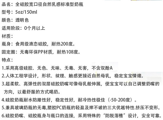 硅膠很柔軟,不用奶瓶刷用手也可以刷到奶瓶的各個(gè)角落,容易清洗。寶寶吸奶時(shí),奶瓶會(huì)隨著奶水的減少而自動(dòng)收縮,始終保持著瓶身內(nèi)外氣壓一致,避免寶寶吸入過多的空氣而導(dǎo)致嗆奶、腹脹等不適,有效解決喂奶時(shí)脹氣的煩惱,從而達(dá)到自動(dòng)呼吸的功能。