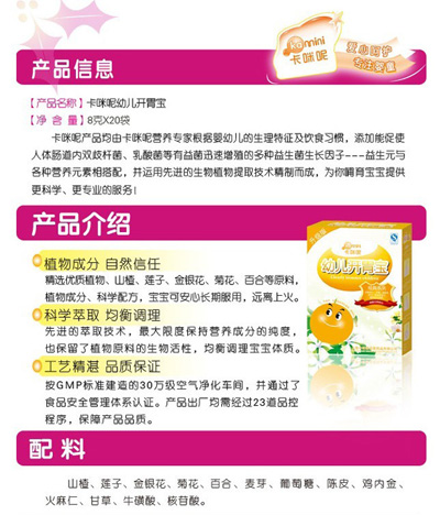 卡咪呢有機(jī)米粉系列是專為中國寶寶設(shè)計的營養(yǎng)輔食,選用有機(jī)大米,科學(xué)搭配維生素AD等維生素,還特別添加;撬、DHA、AA等有助智力發(fā)育的營養(yǎng)成分,富含15種營養(yǎng)素,F(xiàn)上?ㄟ淠啬笅胗闷酚邢薰久嫦蛉珖瞻资袌鰠^(qū)域誠招卡咪呢有機(jī)米粉代理商。