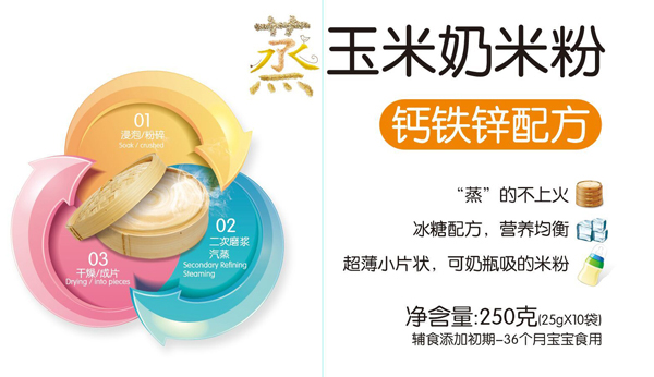 蒸汽滾筒干燥法:通過(guò)蒸汽滾筒工藝,鎖住米香和營(yíng)養(yǎng),減少了寶寶上火現(xiàn)象;