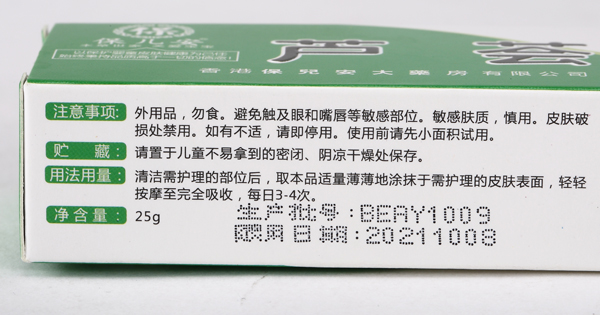 用法用量:清潔需護(hù)理的部位后,取本品適量薄薄地涂抹于需護(hù)理的皮膚表面,輕輕按摩至安全吸收,每日3-4天。