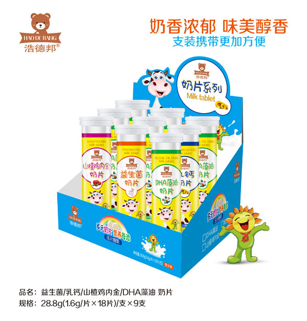浩德邦奶片系列甄選優(yōu)質(zhì)原料,采用先進(jìn)工藝制作,不添加色素、香精、防腐劑等,有DHA藻油、乳鈣、山楂雞內(nèi)金、益生菌四大配方,有瓶裝和支裝兩種不同的規(guī)格,滿足不同需求,口口香脆好滋味。