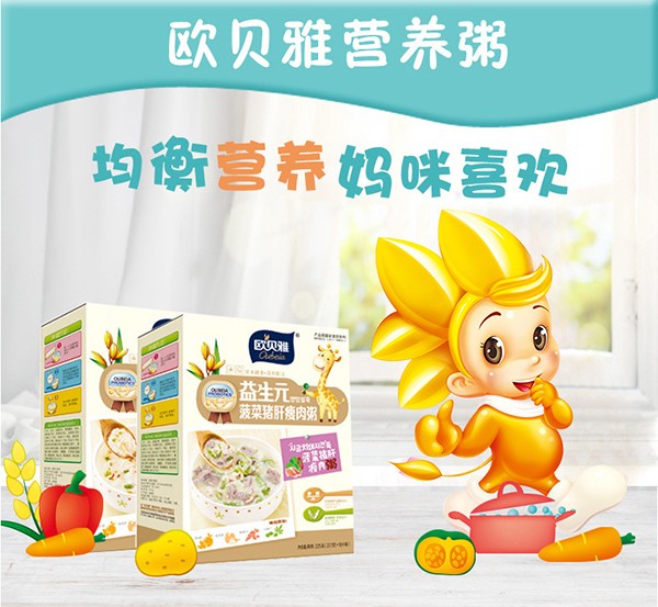 歐貝雅寶寶營養(yǎng)粥是廣東麥丹郎食品有限公司推出的嬰幼兒營養(yǎng)健康食品,將傳統(tǒng)的營養(yǎng)米粉和聞名全國的廣東粥品完美結(jié)合起來,不但保持了營養(yǎng)米粉原有的營養(yǎng)成分,而且口感更佳,沖水即食、方便快捷,廣受父母消費(fèi)者的青睞。