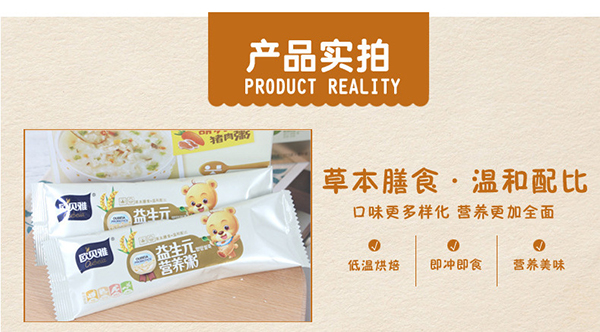 歐貝雅寶寶營養(yǎng)粥是廣東麥丹郎食品有限公司推出的嬰幼兒營養(yǎng)健康食品,將傳統(tǒng)的營養(yǎng)米粉和聞名全國的廣東粥品完美結(jié)合起來,不但保持了營養(yǎng)米粉原有的營養(yǎng)成分,而且口感更佳,沖水即食、方便快捷,廣受父母消費(fèi)者的青睞。