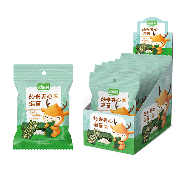 稻田村夾心海苔,鮮香酥脆,雙重美味。不加食品添加劑;不加醬油、不加味精;不加食用油,烘焙非油炸;選用品質(zhì)紫菜,色澤自然墨綠,片薄均勻,鮮嫩有光澤,有紫菜本身的清香;科學(xué)搭配紫菜與酥脆夾心的比例,甜度適中,口感鮮香。