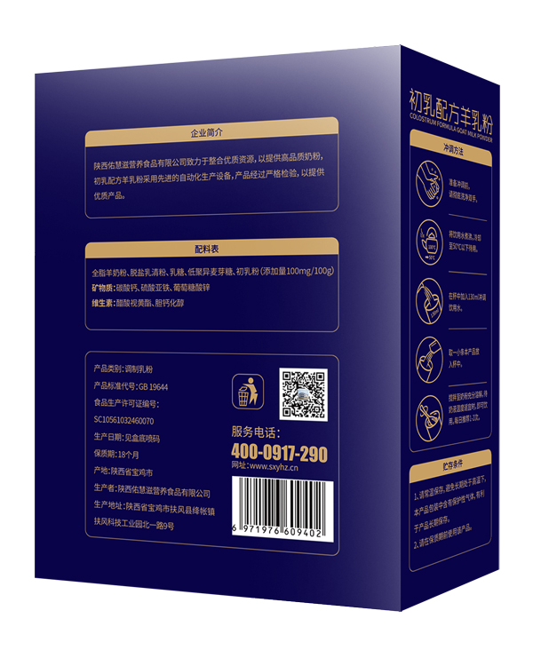 慧滋初乳配方羊乳粉十分注重優(yōu)選原料的重要性,源頭嚴(yán)格把控,安全純凈!更特別添加初乳粉,營養(yǎng)更豐富,且富含蛋白質(zhì)、維生素A、維生素D等成份,配比更科學(xué),且經(jīng)一系列嚴(yán)格工藝精制而成,品質(zhì)過硬!更有聽裝、盒裝兩種包裝形式,產(chǎn)品設(shè)計(jì)高端大氣,彰顯品質(zhì),必將火爆終端市場!