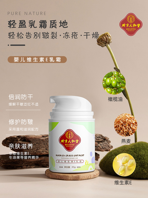 北京人和堂yinge維生素E乳霜,一款根據(jù)yingye嬌嫩肌膚特點所研發(fā)設(shè)計的專業(yè)護膚產(chǎn)品,精選多種天然植物為原料,萃取其精華成份,源頭把控,安全健康,富含維生素E,科學(xué)研究配方,溫和呵護嬌嫩肌,不含激素,滋潤保濕,針對寶寶常見的干燥、脫皮、皸裂等皮膚問題有很好的舒緩作用。