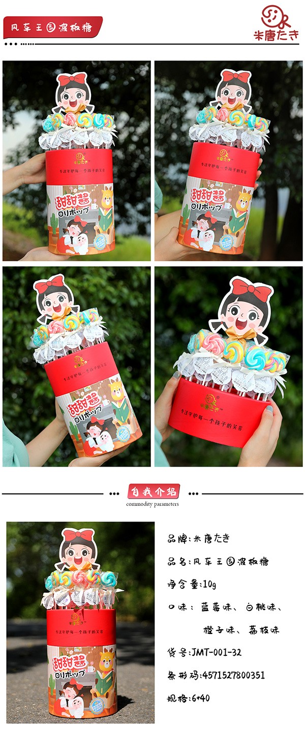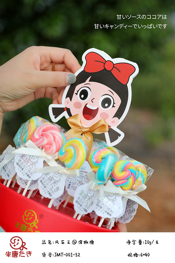 米唐たき品牌,主營棒棒糖,旗下有多個系列產(chǎn)品,如元氣花花棒棒糖、風(fēng)車王國波板糖、貓爪魔法棒棒糖、小魔仙魔法棒棒糖、海洋小分隊棒棒糖、動物派對棒棒糖、魔法棒棒糖等等。