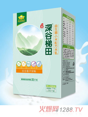 1.金盾愛嬰深谷梯田益生菌小米配方米乳,具有百合蓮子、果蔬繽紛、核桃紅棗、淮山薏米四個(gè)配方,分為罐裝和盒裝兩種,口味齊全,營(yíng)養(yǎng)豐富,