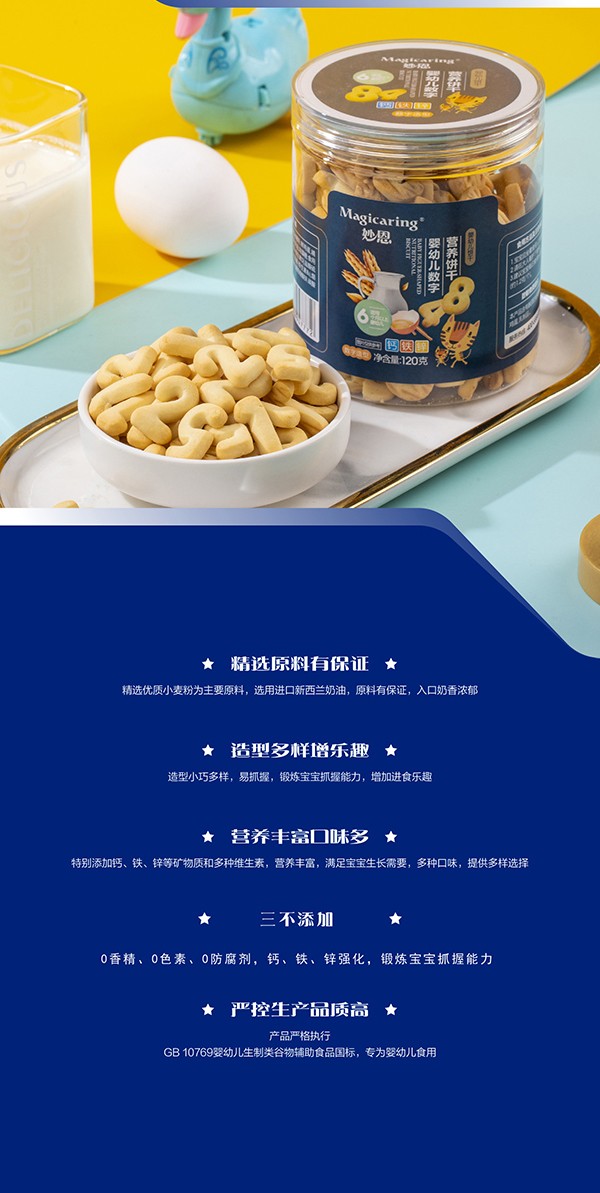嬰標(biāo)GB-10769,不添加香精、色素、防腐劑;0添加白砂糖;0添加食鹽;鈣鐵鋅強化;進(jìn)口新西蘭奶油,安全健康,美味營養(yǎng),好吃又好玩,相伴童年美妙時光!
