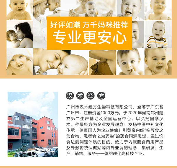 廣州市漢術(shù)經(jīng)方生物科技有限公司在母嬰行業(yè)積累了多年經(jīng)驗(yàn),專業(yè)致力于貼劑藥浴類產(chǎn)品的開發(fā),漢術(shù)經(jīng)方三伏保健貼的每款產(chǎn)品都具備最優(yōu)性價(jià)比,在同類產(chǎn)品中具備很強(qiáng)的競爭優(yōu)勢,一經(jīng)上市便在市場銷售火爆,得到眾多經(jīng)銷商的一致好評(píng)。