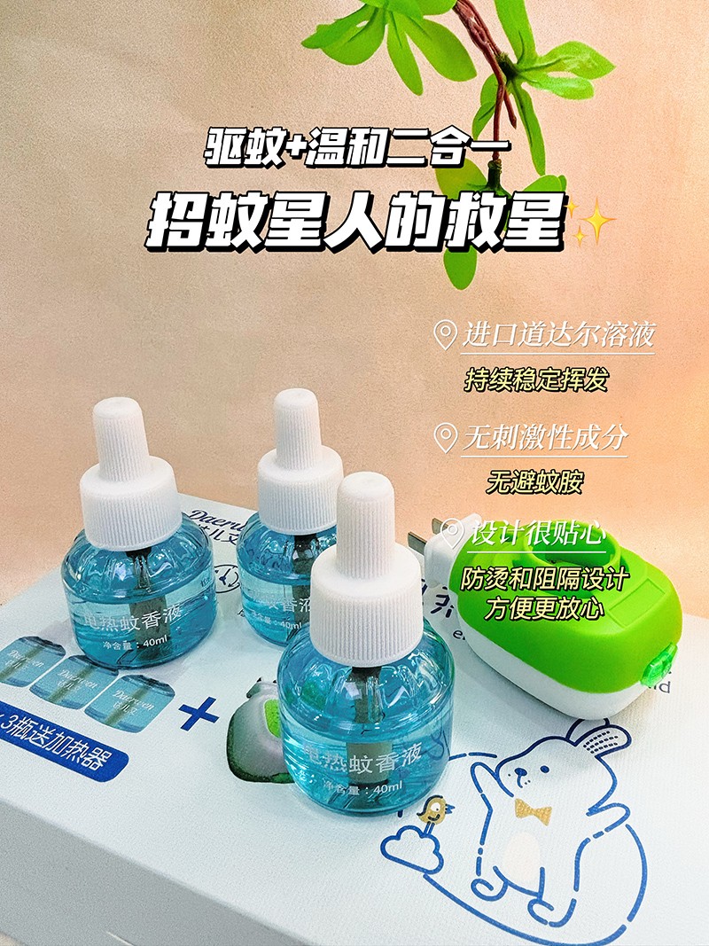 達(dá)兒文電熱蚊香液,溫和驅(qū)趕蚊蟲(chóng),無(wú)香無(wú)煙,溫和有效,安全守護(hù),持久有效。