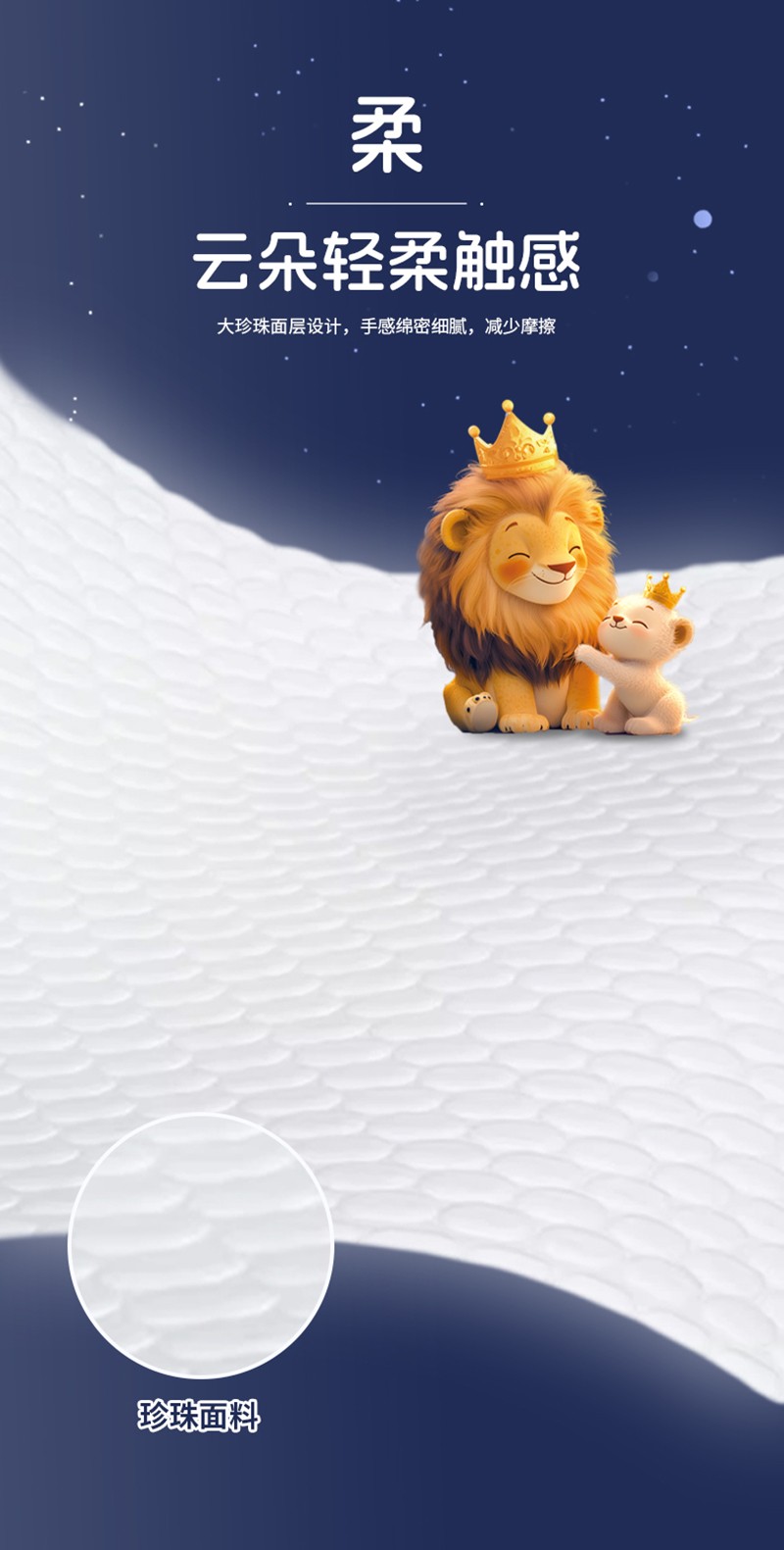 云朵輕柔觸感:大珍珠面層設(shè)計,手感綿密細膩,如云朵般輕柔,減少摩擦。