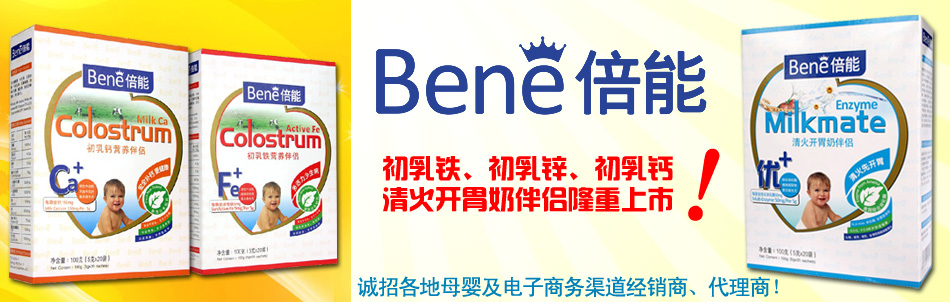 Bene倍能初乳鐵、初乳鋅、初乳鈣、清火開胃奶伴侶隆重上市,誠招各地母嬰及電子商務(wù)渠道經(jīng)銷商、代理商!