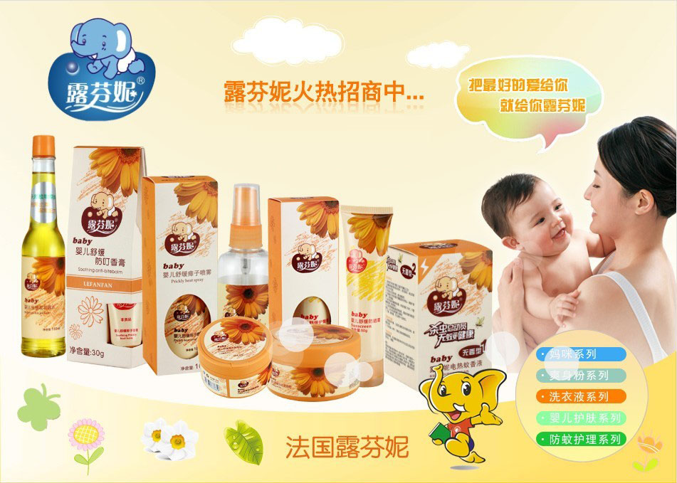 品牌名稱:露芬妮 主營產(chǎn)品:露芬妮母嬰用品招商 品牌特色:專業(yè) 健康