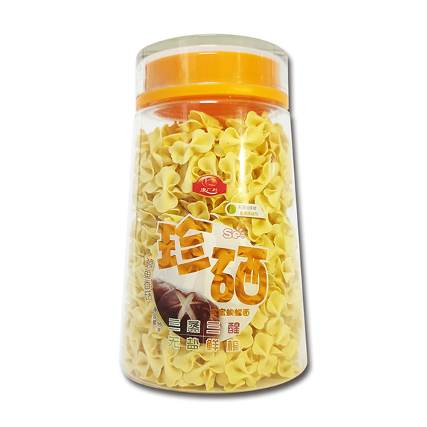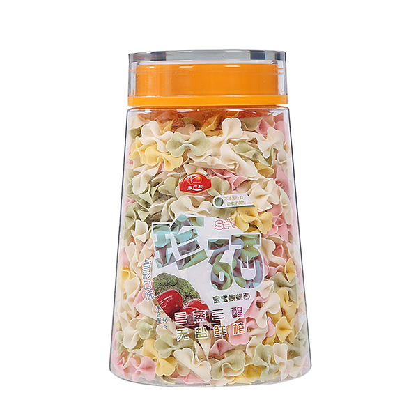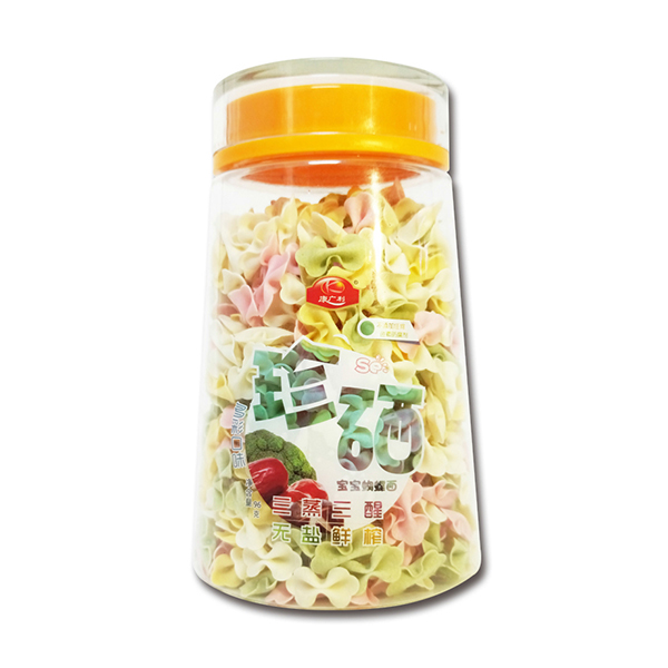 康廣利珍硒蝴蝶面,采用麥芯粉、鮮榨蔬菜汁等優(yōu)質(zhì)食材制作,經(jīng)獨(dú)特用心調(diào)制,淡淡的雜糧和蔬菜香味進(jìn)入面條中,讓寶寶的味蕾開(kāi)始旅行。半發(fā)酵面,三醒三蒸,無(wú)鹽無(wú)添加,不含色素、防腐劑、增白劑,健康安全。易煮不渾湯,造型獨(dú)特新穎,面體爽滑,口感美味。罐裝設(shè)計(jì),易于存儲(chǔ),干凈衛(wèi)生,食用方便。
