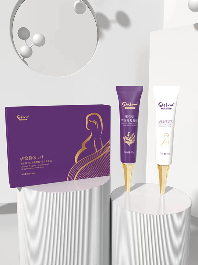 貝小一孕紋修護(hù)1+1套盒,里面有“薰衣草孕紋修復(fù)凝膠”和“孕紋修復(fù)乳”共兩支,通過科學(xué)配比, 添加薰衣草等植物油萃,可以密集滋養(yǎng)肌膚,舒緩肌膚,從而實(shí)現(xiàn)“外淡紋、內(nèi)修護(hù)”,緊致增彈,淡化孕紋。