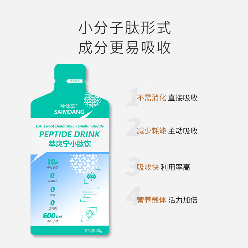 師任堂萃爽寧小肽飲匯聚黨參肽、鐵皮石斛肽、馬齒莧肽等10種食養(yǎng)同源小分子肽精華,將傳統(tǒng)食材與現(xiàn)代科技相融合。這些小分子肽成分就像一個個 “營養(yǎng)小衛(wèi)士”,輕松穿透吸收壁壘,為孩子成長注入滿滿活力。產(chǎn)品全程堅守?zé)o香精、無色素、無防腐劑的 “三無” 原則,每一袋都是健康之選,讓家長放心,更讓合作伙伴安心。