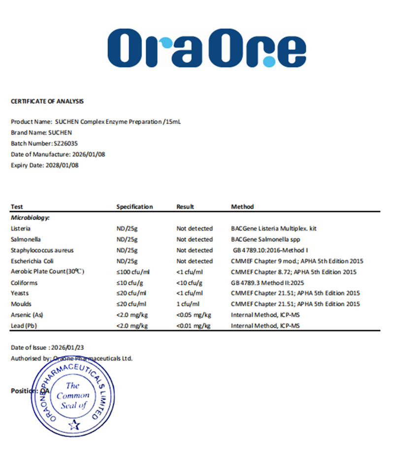 產(chǎn)品為新西蘭原裝進(jìn)口,生產(chǎn)商奧拉具備新西蘭藥廠級(jí)生產(chǎn)資質(zhì),并通過(guò)HACCP、GMP、FDA等國(guó)際權(quán)威體系認(rèn)證,生產(chǎn)環(huán)境與質(zhì)控體系達(dá)到藥品級(jí)標(biāo)準(zhǔn),該復(fù)配酶制劑類(lèi)產(chǎn)品適用于新西蘭食品及膳食補(bǔ)充劑的生產(chǎn)和加工。