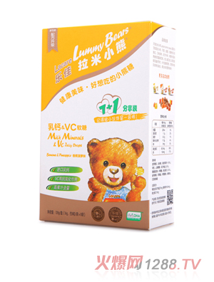 樂佳拉米小熊DHA軟糖也能提高鈣吸收率:5-6粒軟糖=100ml約4盎司牛奶,特別添加VD3天然果色&果味65%低糖低熱量,遠(yuǎn)離齲齒和肥胖不含人工色素、防腐劑。