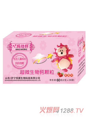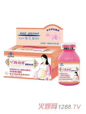 媽幼好超微孕婦鈣高含量?jī)?yōu)質(zhì)天然鈣--每片含經(jīng)超微粉碎至1500目的的1000mg鈣,更安全、更易吸收。為中國(guó)孕婦定向設(shè)計(jì)的專業(yè)配方,結(jié)合日常膳食,滿足孕期及乳母每日鈣的需要,特別添加CPP--從天然蛋白質(zhì)中提取的生理活性肽,能促進(jìn)鈣在人體內(nèi)的吸收,維生素D幫助維持體內(nèi)鈣水平的穩(wěn)定?诟泻,每日一片,滿足鈣的需要,可咀嚼或含服,牛奶口味,也可緩解妊娠反應(yīng)。