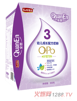 全恩奶粉吸收益護(hù):添加GOS+FOS和L-肉堿。 復(fù)合益生元(GOS+ FOS):能促進(jìn)changdao益生菌的增殖,維護(hù)changdao健康,促進(jìn)消化吸收。 L-肉堿:有助于脂肪的消化吸收。