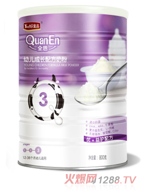 對(duì)bao--bao來(lái)說(shuō)健康聰明成長(zhǎng)是關(guān)鍵,時(shí)期是生長(zhǎng)發(fā)育的黃金期,營(yíng)養(yǎng)的有效的充足補(bǔ)充是必要,奶粉的選擇就應(yīng)該選擇最優(yōu)質(zhì)的產(chǎn)品!全恩奶粉秉承“只做自然運(yùn)輸工”的制造理念,選用進(jìn)口優(yōu)質(zhì)奶源,采用四重優(yōu)+益護(hù)配方,專(zhuān)為中國(guó)bao--bao打造一款天然、安全、營(yíng)養(yǎng)均衡的奶粉。