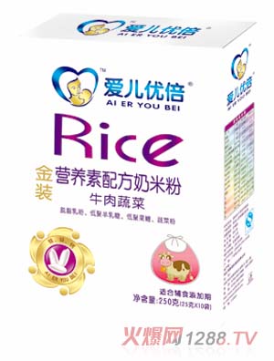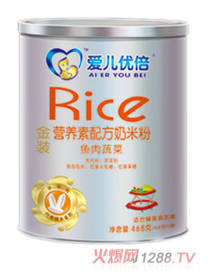 愛兒優(yōu)倍魚肉蔬菜金裝營(yíng)養(yǎng)素配方奶米粉添加有魚肉粉和蔬菜粉,適合10到36個(gè)月bao--bao食用。該系列產(chǎn)品主要以優(yōu)質(zhì)米粉為原料,添加多種鐵、鋅、鈣、維生素A、D等多種營(yíng)養(yǎng)物質(zhì),具有免煮即沖即食的優(yōu)點(diǎn)。