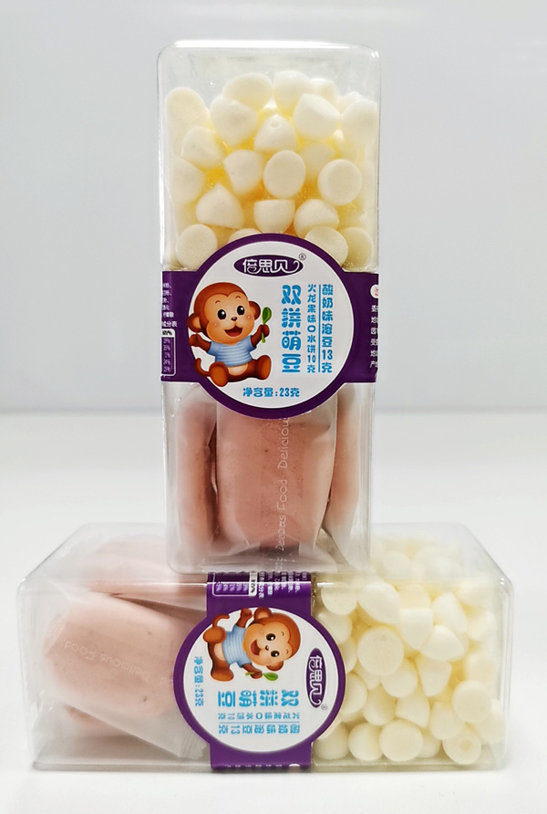 倍思貝雙拼萌豆系列,甄選優(yōu)質原料,采用先進烘焙工藝制作,特別融合酸奶、果蔬等食材,碰撞出別樣美味,口水餅+溶豆雙拼組合,同時享受兩種美味,樂趣無窮。四種組合口味,分別為酸奶味口水餅+獼猴桃味溶豆、火龍果味口水餅+酸奶味溶豆、火龍果味口水餅+香橙味溶豆、酸奶味口水餅+火龍果味溶豆,巧妙雙拼,美味享受,而且無多余添加,易消化,無負擔,更健康。