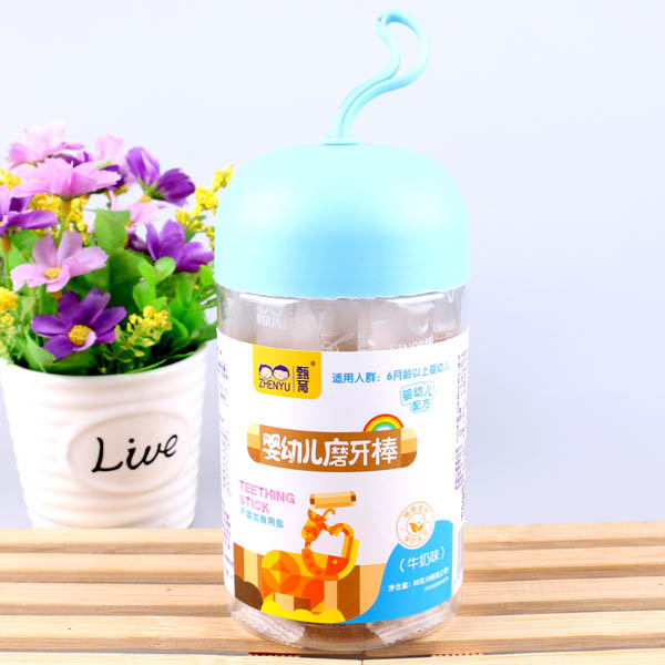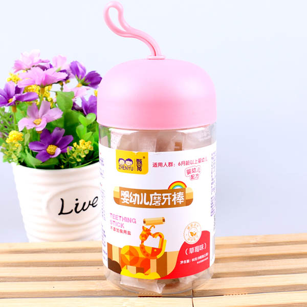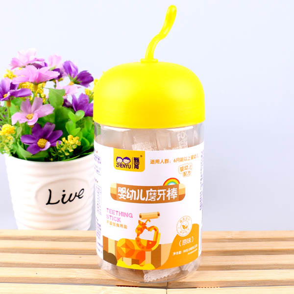 甄育yingye磨牙棒草莓味牛奶味原味兒童餅干小零食罐裝代理產(chǎn)品展示