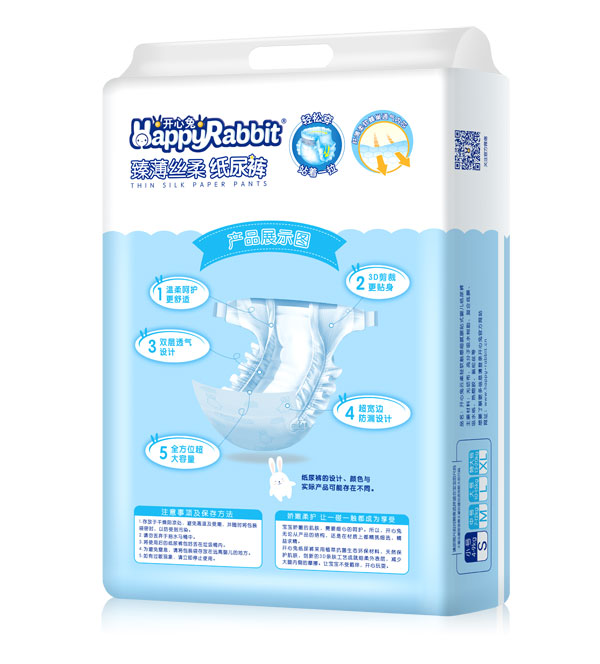“開心兔”是廣州世盛貿(mào)易有限公司旗下紙尿褲品牌,致力于為媽媽和寶寶提供更全面更周到的服務,開心兔系列紙尿褲5D維度立體剪裁,讓寶寶時刻樂動,舒適自如;0.2mm超薄芯體設計無墜力;進口SAP雙分子搭配獨特導流設計,強瞬瑣吸,不起坨,不斷層;大環(huán)腰彈性立體腰圍,柔如媽媽的懷抱;超級綿柔內(nèi)層面溫暖呵護;千萬個納米透氣小孔的PE透氣層,干爽透氣不紅PP;開心兔紙尿褲,250毫升水6秒瞬吸鎖水、60秒瞬吸無反滲,1片高于同類產(chǎn)品30%鎖水力。
