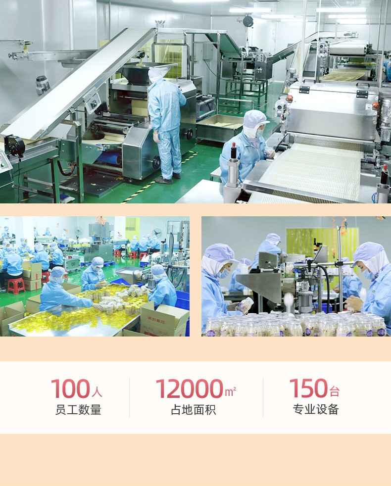漳州童世界食品有限公司主營一站式代加工OEM業(yè)務(wù),致力于健康兒童食品、功能性代餐食品、凍干燕窩的研發(fā)與生產(chǎn),公司占地面積12000平方米,始終秉承已科技為先導(dǎo)、以先進的現(xiàn)代化管理依托、已“顧客滿意第一”為宗旨的經(jīng)營方針、致力發(fā)展成為一家研發(fā)和制造健康、美味、營養(yǎng)的食品企業(yè)。 公司的誠信、實力和產(chǎn)品質(zhì)量獲得業(yè)界的認(rèn)可。歡迎各界朋友蒞臨參觀、指導(dǎo)和業(yè)務(wù)洽談。