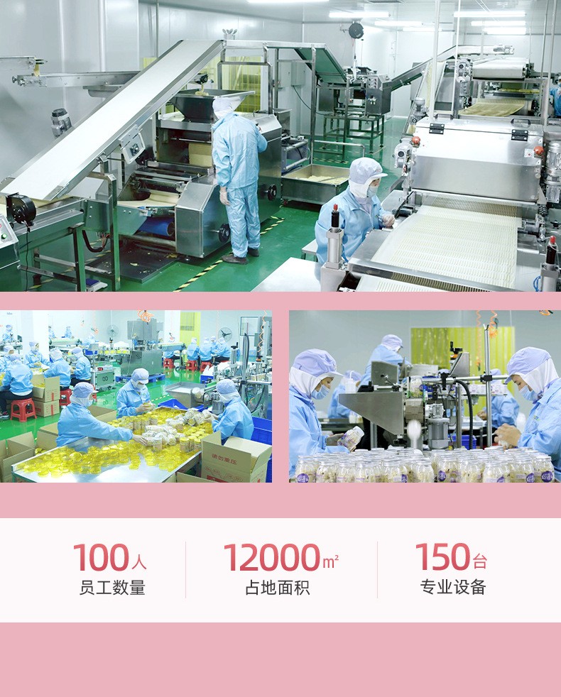 漳州童世界食品有限公司主營一站式代加工OEM業(yè)務,致力于健康兒童食品、功能性代餐食品、凍干燕窩的研發(fā)與生產(chǎn),公司占地面積12000平方米,始終秉承已科技為先導、以先進的現(xiàn)代化管理依托、已“顧客滿意第一”為宗旨的經(jīng)營方針、致力發(fā)展成為一家研發(fā)和制造健康、美味、營養(yǎng)的食品企業(yè)。 公司的誠信、實力和產(chǎn)品質(zhì)量獲得業(yè)界的認可。歡迎各界朋友蒞臨參觀、指導和業(yè)務洽談。