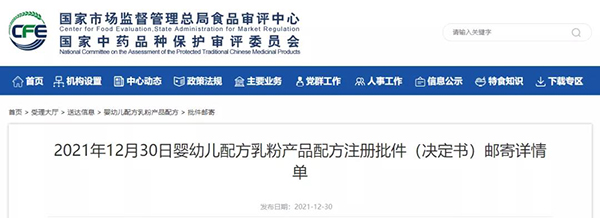 近日,國家市場監(jiān)督管理總局食品審評中心發(fā)布嬰幼兒配方乳粉產(chǎn)品配方注冊批件(決定書)郵寄詳情單(12月30日)和特殊醫(yī)學(xué)用途配方食品批件(決定書)待領(lǐng)取信息和郵寄詳情單(12月30日),共涉及12款嬰配食品和3款特醫(yī)食品,詳情如下。(國家市場監(jiān)督管理總局)