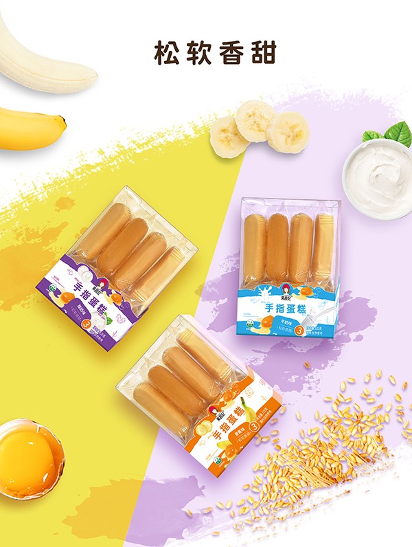 果蔬妃【手指蛋糕】生產(chǎn)過程中不添加人工色素、香精和防腐劑,堅守安全配方,選用有機雞蛋和有機面粉,采用烘烤工藝,松軟香甜,有香蕉、牛奶、酸奶3種口味供寶寶選擇!