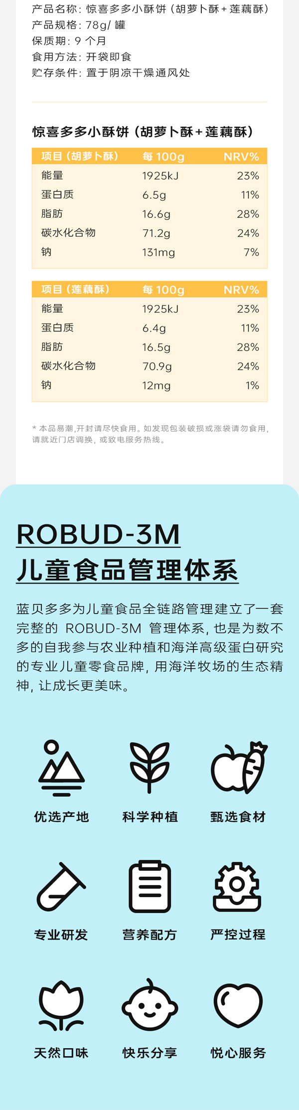 藍(lán)貝多多驚喜多多小酥餅(胡蘿卜酥+蓮藕酥),添加蓮藕&胡蘿卜,拒絕多余添加,雙拼口味,雙重滿足,低溫烘焙, 非油炸,保留食材中的營養(yǎng)成分,鎖住食材色香味,海藻糖更益牙,不會(huì)引起齲齒,獨(dú)立小包,定時(shí)定量。