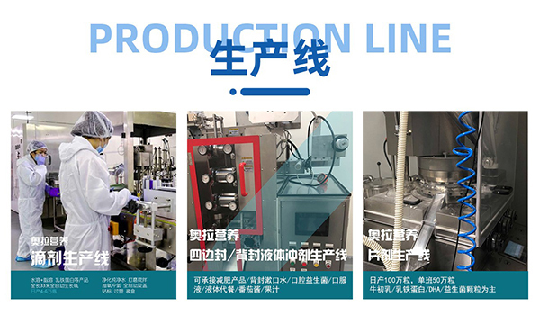 目前,“奧拉營(yíng)養(yǎng)”可OEM代工產(chǎn)品品類有配方乳粉、滴劑、口服液、片劑、粉劑、軟硬膠囊、營(yíng)養(yǎng)軟糖等等,品質(zhì)過硬,品類多元!更于2022年年初全面升級(jí)孕婦及成人運(yùn)動(dòng)營(yíng)養(yǎng)產(chǎn)業(yè)線,覆蓋人群更廣,涵蓋產(chǎn)品線更全,秉承其一貫的高品質(zhì)、嚴(yán)要求,為品質(zhì)護(hù)航!加之其細(xì)致入微的一條龍服務(wù),快速贏得了廣大合作伙伴的一致好評(píng),客戶遍布全國(guó),在營(yíng)養(yǎng)食品代工領(lǐng)域極具口碑!