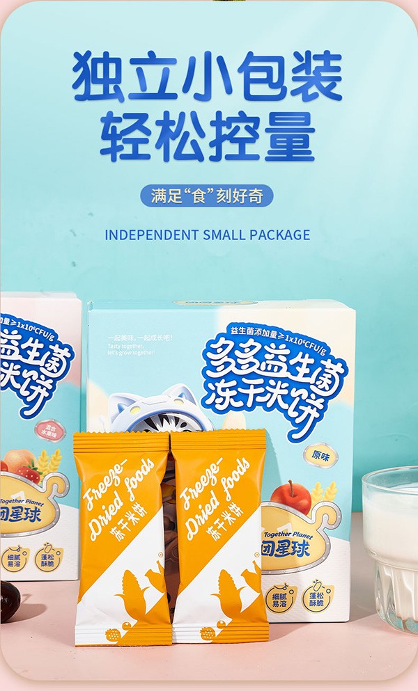 在新時代消費群體的健康理念下,90后00后的家長們更加注重寶寶入口零食的健康。對此團團星球兒童零食,一直專注于兒童入口的嬰童零輔食的健康與營養(yǎng),深入研究,注重生產(chǎn)的每一個細節(jié),用上乘的品質(zhì)征服了眾多消費者與經(jīng)銷商的心。這款團團星球多多益生菌凍干米餅-原味產(chǎn)品更是深受消費者的喜愛。