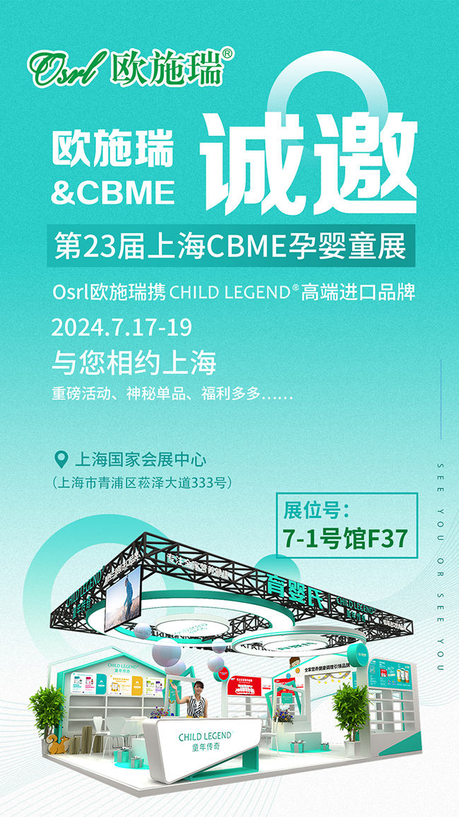 作為母嬰營養(yǎng)品領(lǐng)域的優(yōu)秀品牌,歐施瑞將攜童年傳奇高端進(jìn)口品牌重磅亮相2024上海CBME孕嬰童展,展位號:7-1F37,在此,誠邀您蒞臨參觀,溝通交流!